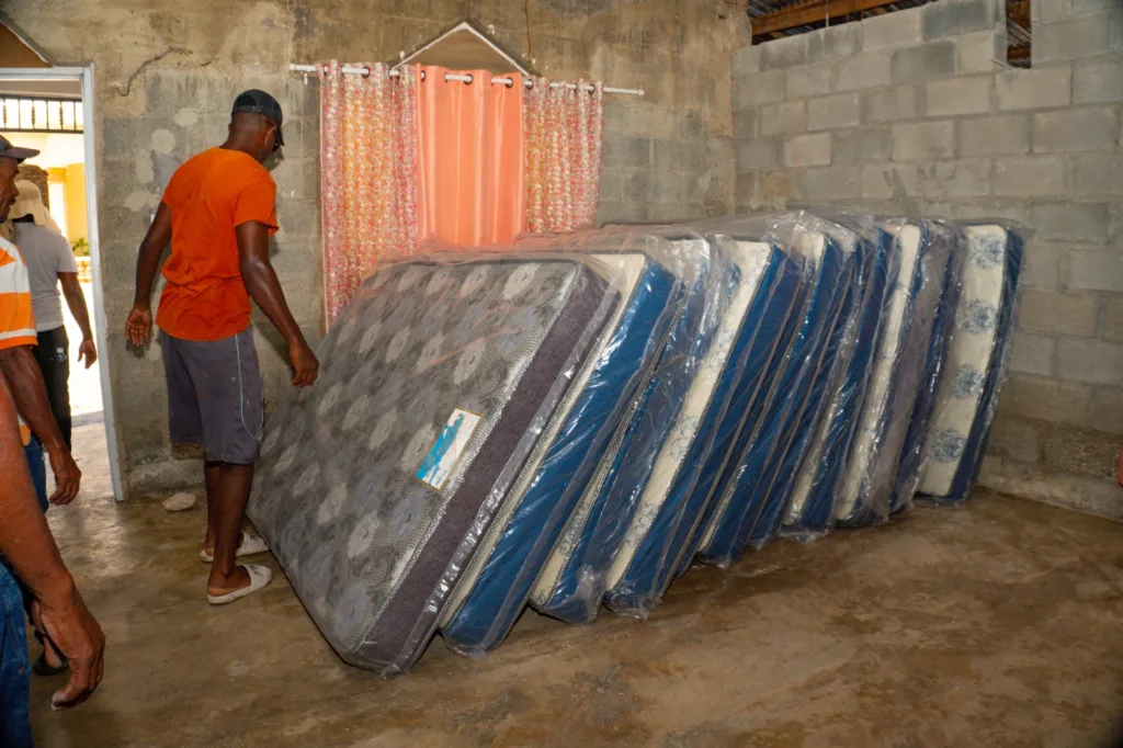 El administrador general del organismo, Elsido Díaz, entregó madera, zinc, colchones, sillas de rueda, ollas, tanques de gas, mosquiteros, sábanas y otros enseres del hogar a familias que perdieron la mayoría de sus pertenencias a causa de las inundaciones.